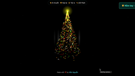 - ✊ Nắm Tay: Gom các hạt về lại hình dáng cây thông.